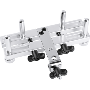 Sometimes a favorite frame drum just needs to be mounted on a percussion rack. That’s why we designed a compact, light weight frame drum holder that is completely adjustable to fit any frame drum. Four rounded vertical “fingers” slide along individual tracks, and are secured by a knurled knob. This sets the spacing. The frame drum is secured when two spring-loaded screws are tightened so that the vertical fingers grip the frame from inside and out. Set-up and break-down go fast. Steel mounting clamp fits any standard rod.